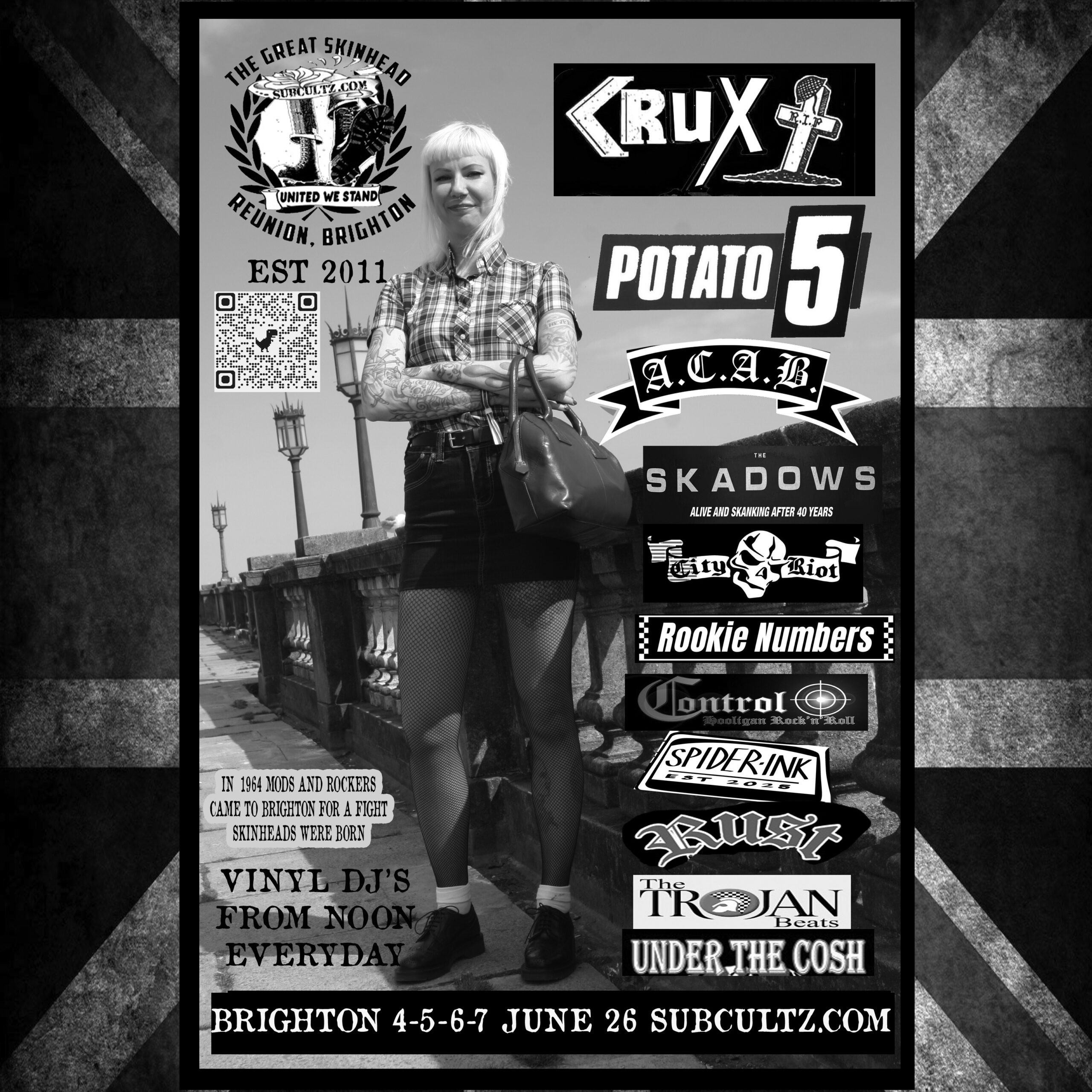 Skacave at The Great Skinhead Reunion BrightonAvoid commissions click QR and pay face value direct to Revolut bank . Then please email subcultz@gmail.com or text your details to +447733096571 reference your name and number tickets ordered